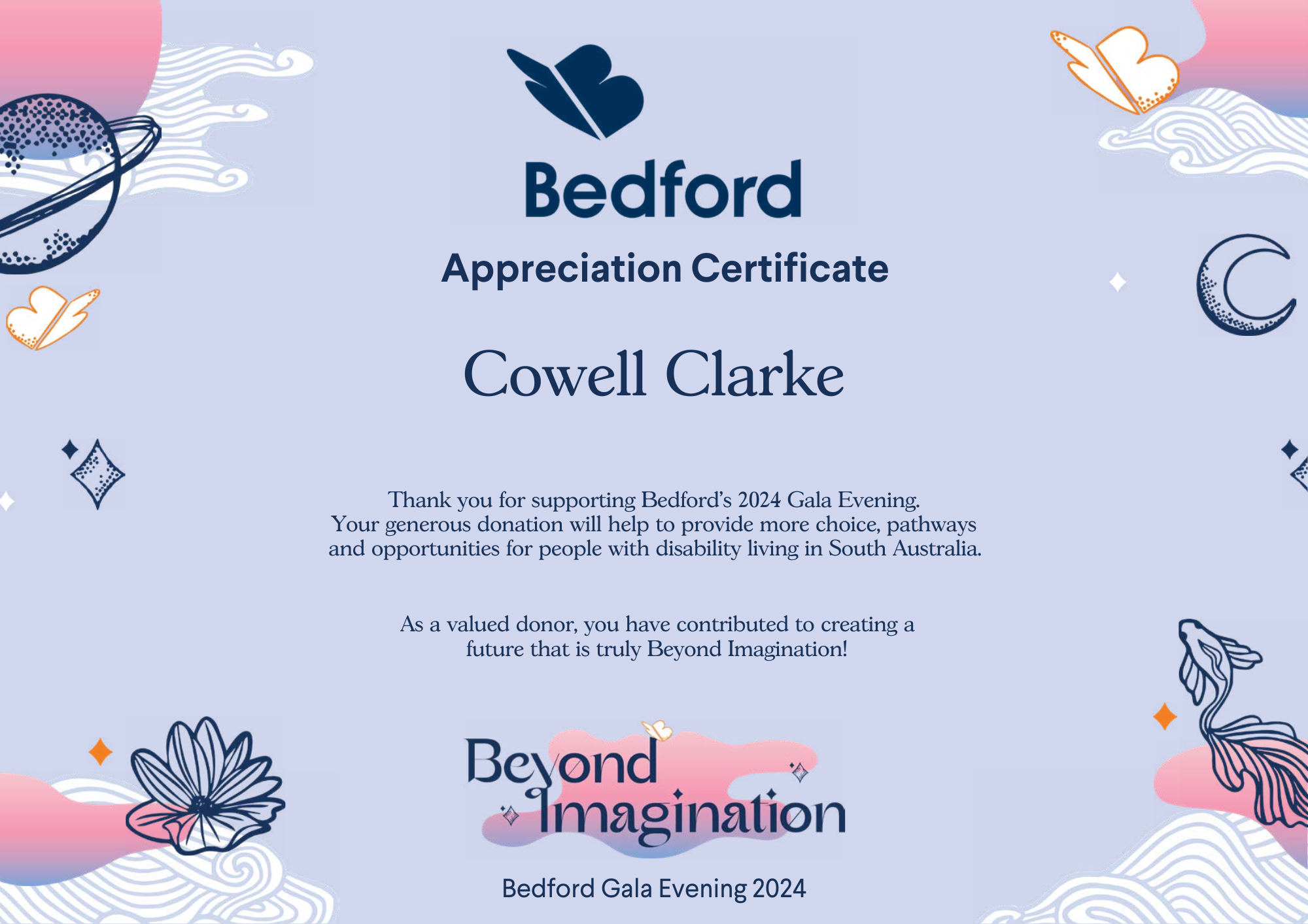 We are pleased to have recently supported Bedford’s Beyond Imagination Gala evening in May 2024. The event is an important fundraising event to contribute to more jobs, opportunities and a beaming future for people with disability in South Australia.